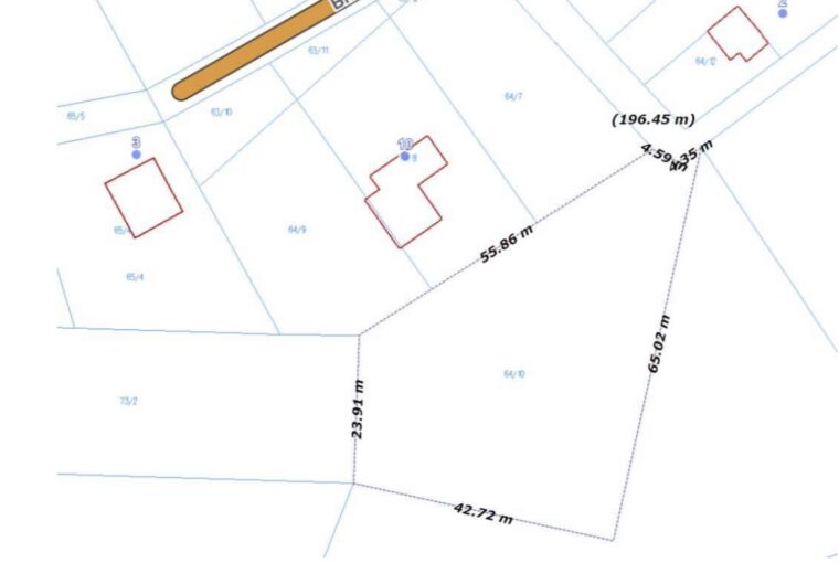 Działka o powierzchni ok 1924m2 nieregularna przypominająca trapez